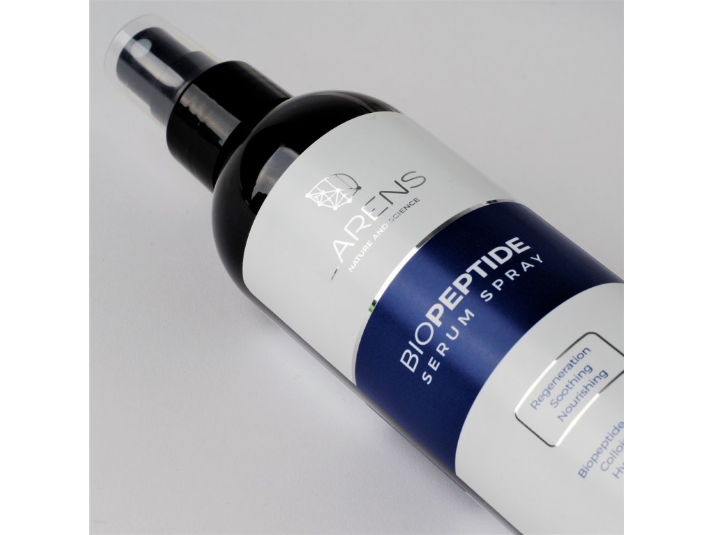 Biopeptide Serum Spray představuje kosmeceutikum s jedinečným složením, které je založené na patentovaném komplexu biopeptidů. Jeho neocenitelnost spočívá v multifunkčnosti vyplývající jak z rozmanitosti používání, tak i ze spektra jeho účinků. Přípravek je určený k péči o pokožku tváře, celého těla i vlasů. Obsahuje soubor aktivních látek, jejichž spojení přináší trojnásobný účinek: regenerační, vyživující a ochranný, má praktické, univerzální balení.